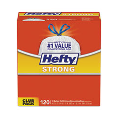 Strong Tall Kitchen Drawstring Bags, 13 gal, 0.9 mil, 23.75" x 27", White, 120 Bags/Box, 3 Boxes/Carton