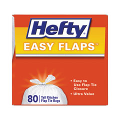 Easy Flaps Trash Bags, 13 gal, 0.69 mil, 23.75" x 28", White, 80 Bags/Box, 3 Boxes/Carton