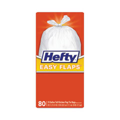 Easy Flaps Trash Bags, 13 gal, 0.8 mil, 23.75" x 28", White, 80/Box
